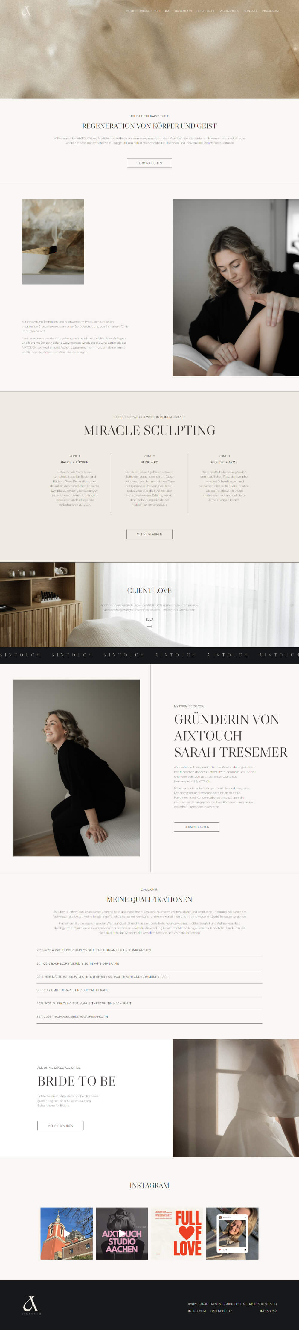 Every element was carefully chosen to reflect the holistic and regenerative approach of Sarah’s work, ensuring the site is both visually calming and easy to navigate. The result is a digital space that perfectly aligns with the ethos of AIXTOUCH, offering visitors a serene and intuitive journey.