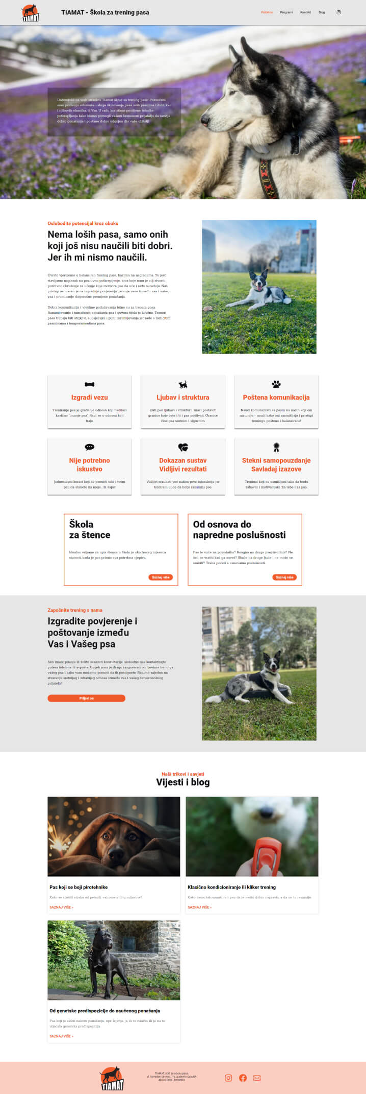 Building Tomislav’s website for their dog training school was a joyous project. We focused on creating a visually appealing, user-friendly space that reflects Tiamat’s positive training approach. The website features a vibrant homepage, easy navigation, and engaging content about classes.The class schedule and enrollment process are presented with user-friendly clarity, making it easy for clients to fetch the information they need. A blog section keeps the content fresh, offering tips and engaging articles to establish the trainer as an authority in the field. In the end, we successfully created a digital space that not only mirrors the physical training school but also serves as a hub for dog enthusiasts seeking valuable insights and a sense of community.